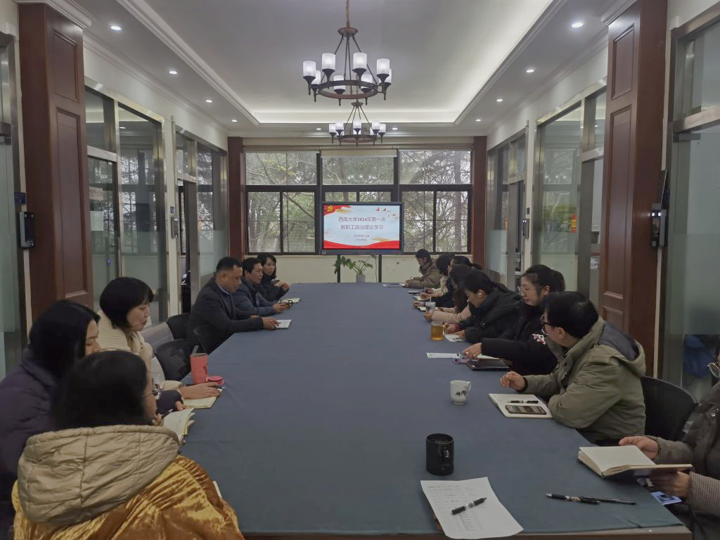 2024年1月5日下午15:00,对外联络办公室2024年第一次教职工政治理论学习在弘文图书馆逸夫楼1楼举行,会议由唐军主任主持。