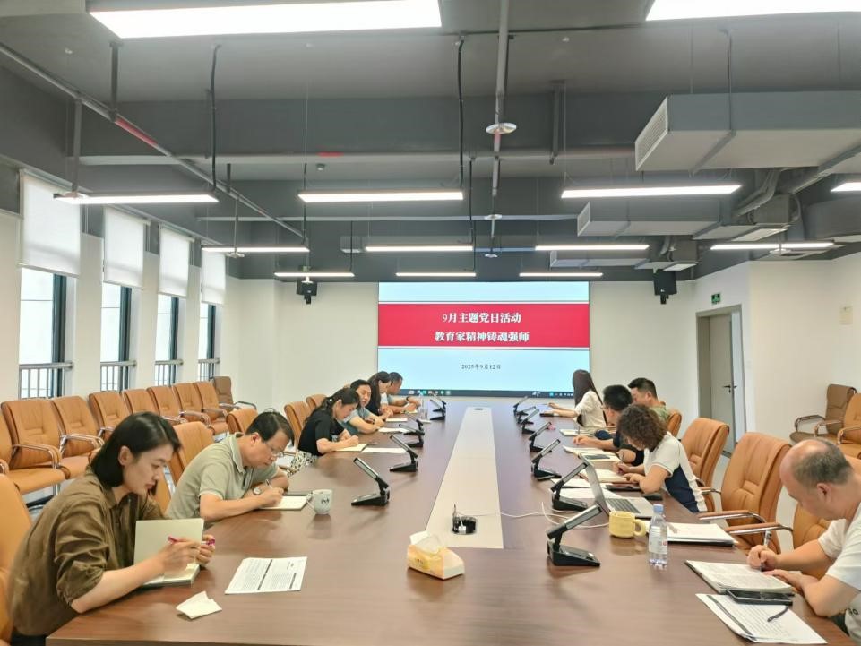 2025年9月12日下午,支部9月主题党日活动在对外联络办公室会议室召开。党日活动主题是“教育家精神铸魂强师”,活动由支部书记唐军同志主持。