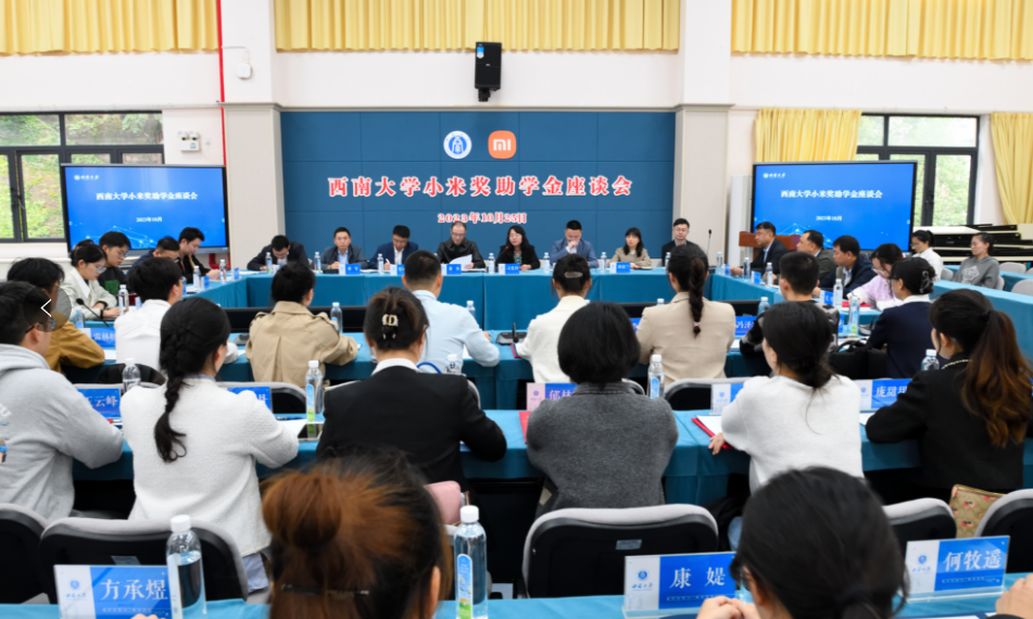 10月25日下午,小米公益基金会执行秘书长刁美玲、小米集团技术委员会秘书长周珏嘉一行来到PA视讯看望“小米奖助学金”获奖学生,与学生代表亲切座谈,学校党委副书记黄杰及相关职能部门负责人出席座谈会,对外联络办公室主任、重庆PA视讯教育基金会秘书长唐军主持会议。