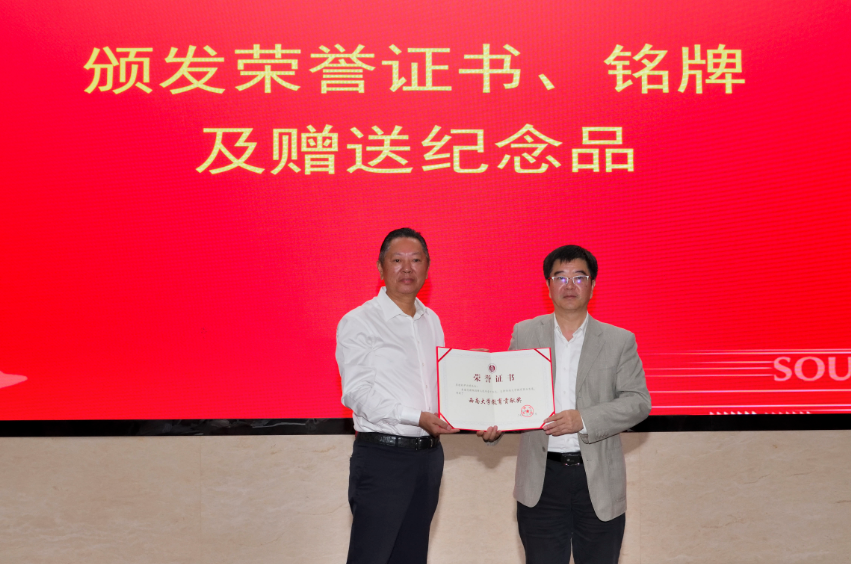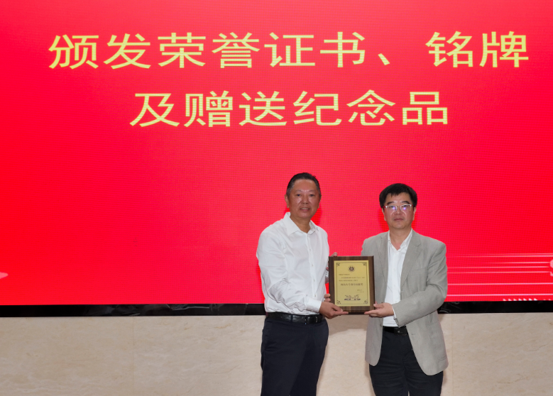 黄杰向尹顺新颁发PA视讯第二届理事会理事单位铭牌。获奖学生代表向尹兴明呈递感恩手册及获奖项目成果。李旭锋向尹兴明颁发“PA视讯教育贡献奖”荣誉证书及铭牌,并代表学校赠送纪念品。