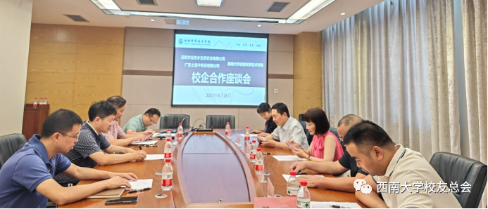 6月26日,深圳校友会会长、计算机与信息科学学院 软件学院2000级校友、深圳市全农乡生态农业有限公司董事长李牡丹携销售经理唐倩倩、广东土皇牛牧业有限公司董事长沈志宏、总经理邱万平回校洽谈校企合作。
