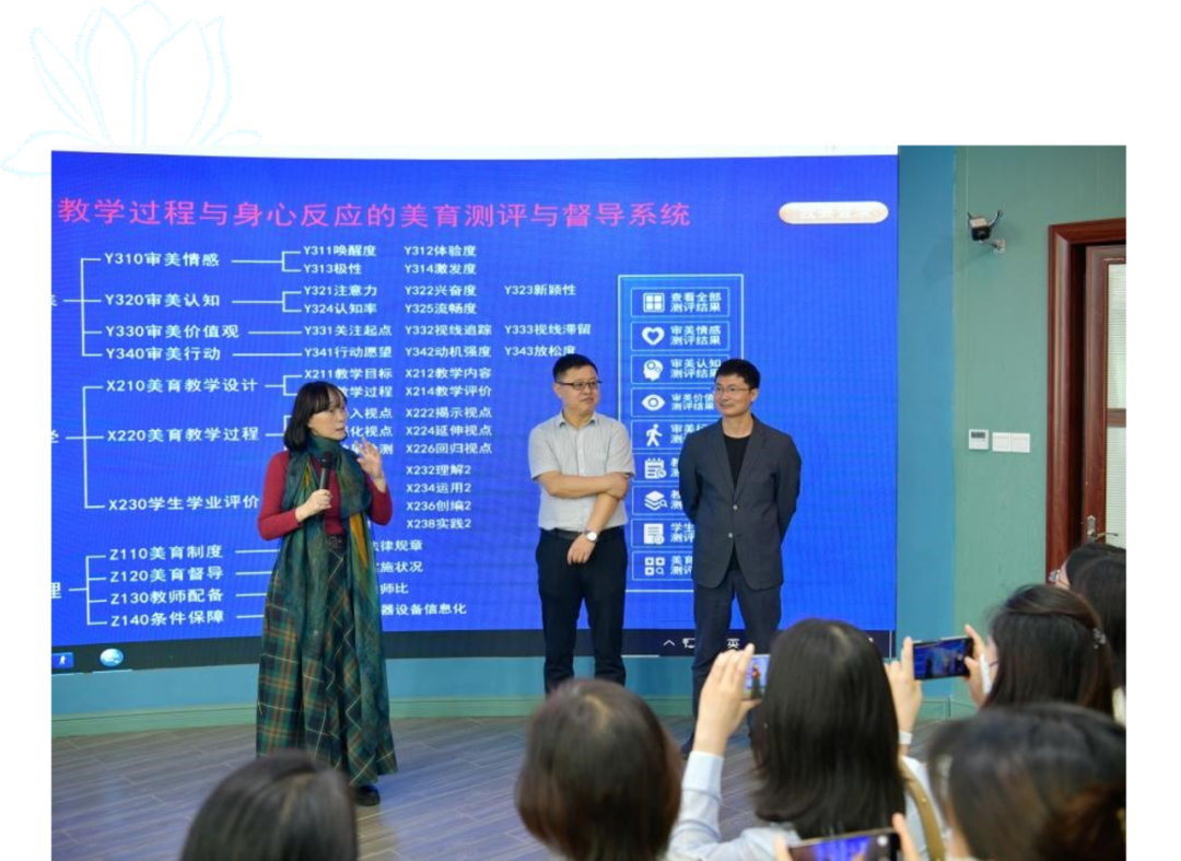 评审会当天来自全国60多所高校的美育教师参观了PA视讯教育学部美育实验室,赵伶俐教授介绍了《基于美育教学过程与身心反应的美育测评系统》的设计思路和总体方案,赵伶俐教授2022级博士生张颜进一步介绍了该项目内部构成的六个子系统,及其相互链接的基本逻辑框架、测评指标体系与数据结构。在场的美育教师通过试戴美育实验头箍体验了该美育评价系统,高度肯定了该系统在解决审美素养测评难题上的价值。