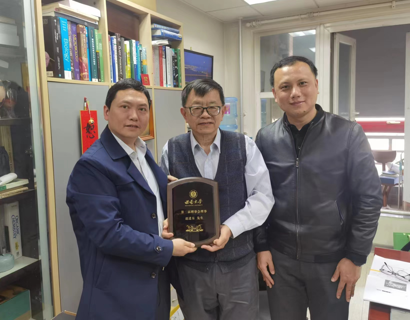 3月20日,走访北京大学生命科学学院,捐赠企业、理事单位、校友联络单位北京大北农科技集团股份有限公司,拜访生命科学学院1977级校友赵进东院士、动物科学技术学院1981级校友宋维平总裁,就如何进一步拓展校友工作覆盖面、推进母校科技成果转化等方面展开深入研讨,并代表学校为两位校友颁发PA视讯理事会个人理事、单位理事铭牌。