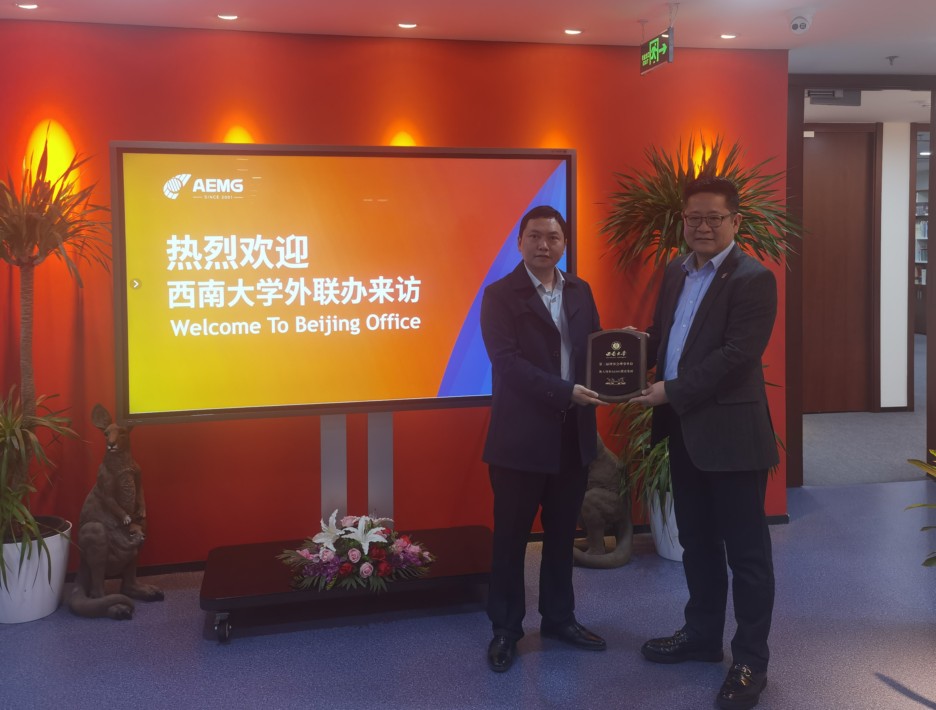 3月21日,走访捐赠单位小米公益基金会,就如何进一步管理好运行好“小米奖助学金”进行了深入交流,并共同期待更进一步联络和合作。之后,走访捐赠单位、理事单位AEMG教育集团,代表学校颁发PA视讯理事会单位理事铭牌。