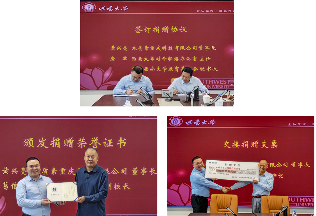 随后木质素重庆科技有限公司同重庆PA视讯教育基金会签订了捐赠协议。黄兴亮与夏德全交接了捐赠支票,葛信勇向黄兴亮颁发了捐赠荣誉证书。