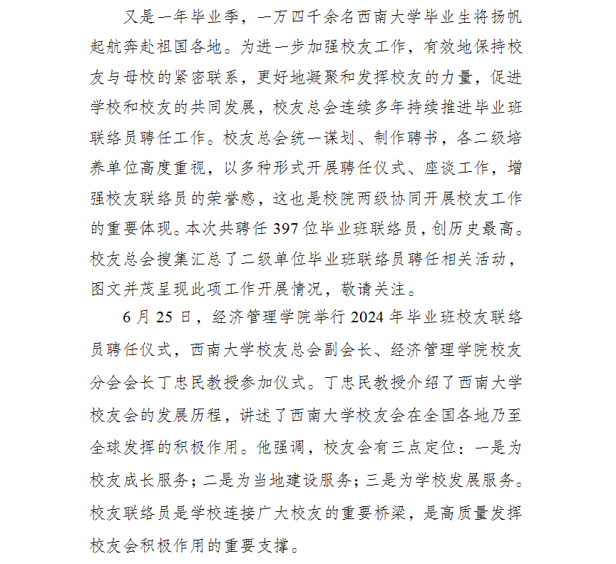学校新聘任397名2024届毕业班联络员