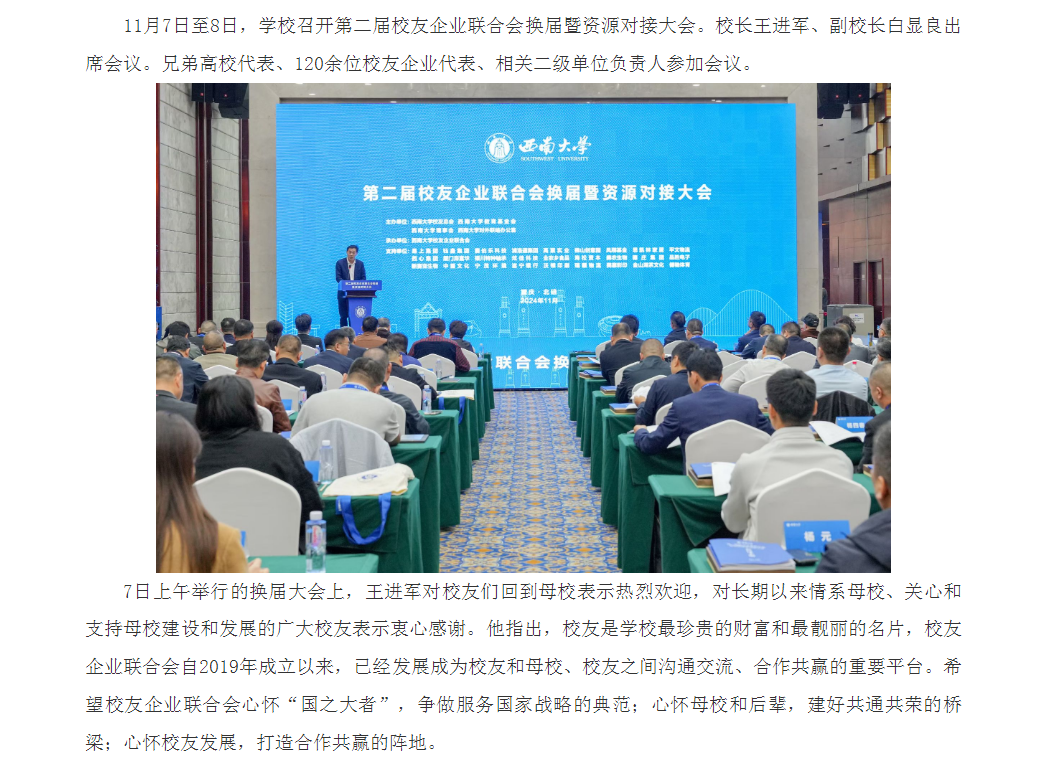 学校召开第二届校友企业联合会换届暨资源对接大会