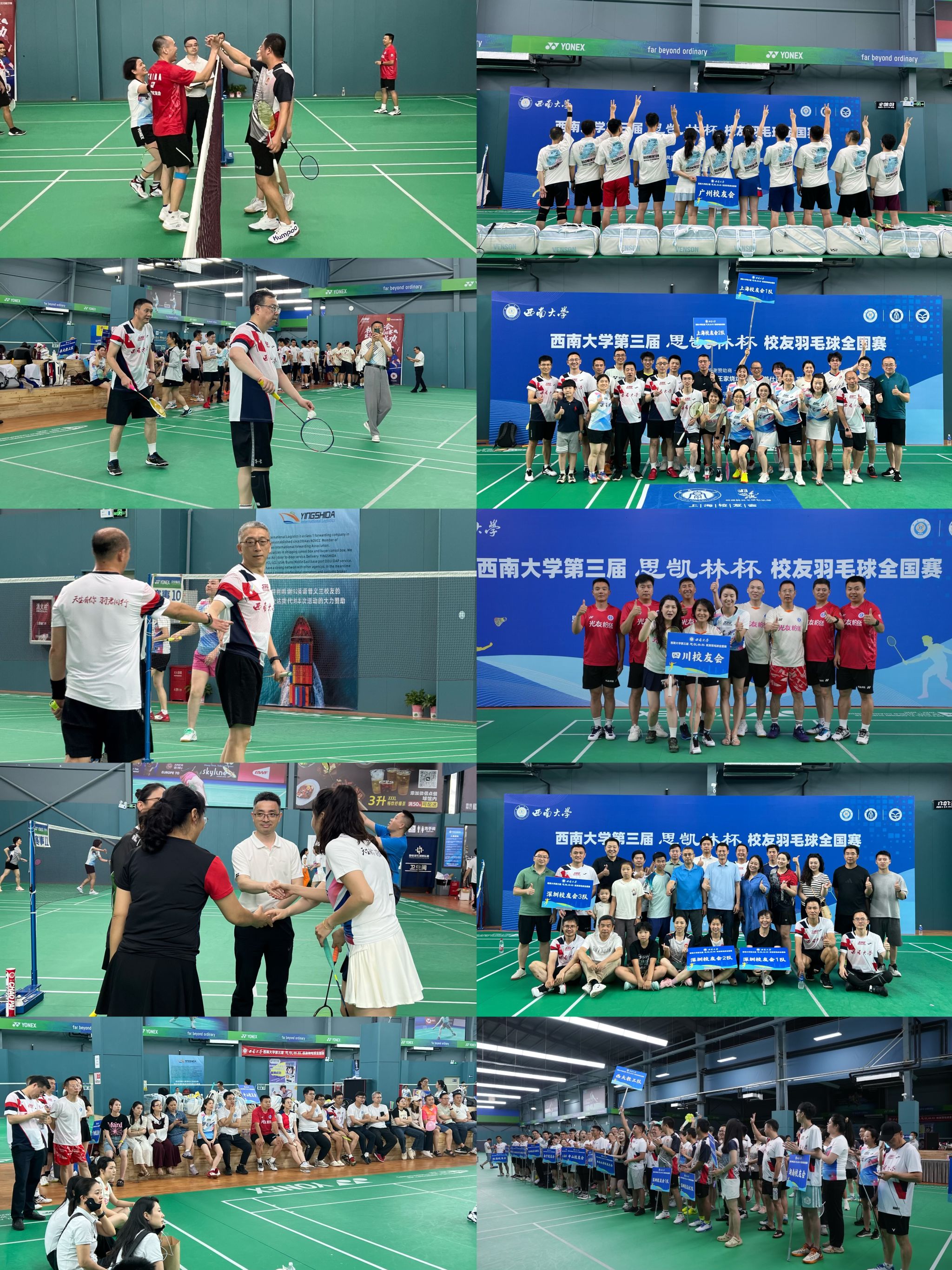 经过一天的激烈角逐,四川校友会代表队勇夺冠军;嘉宾组男子双打由四川校友会摘得头魁;嘉宾组女子双打由云南校友会夺得桂冠。