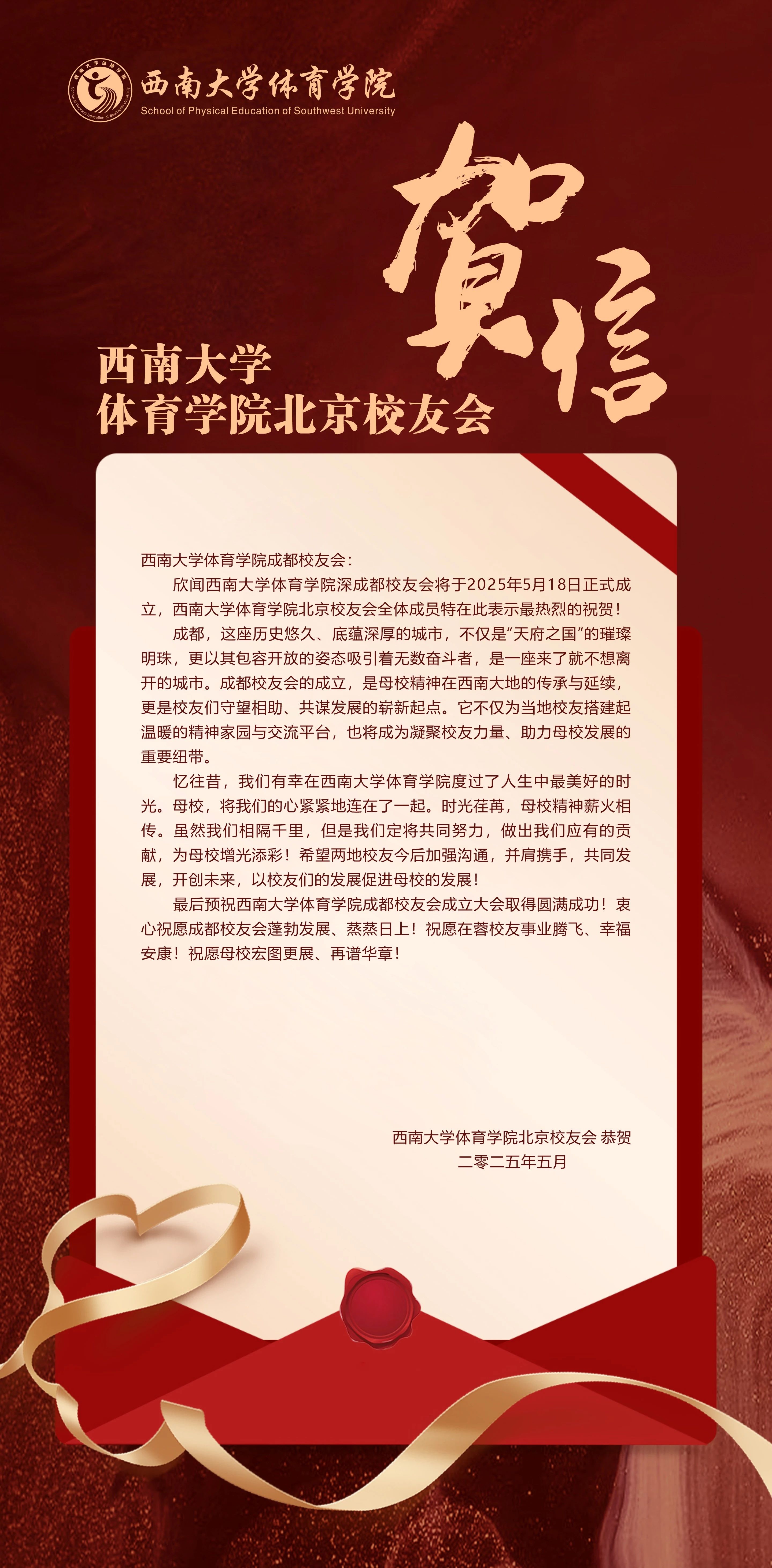 2025 年 5 月 18日,PA视讯体育学院成都校友会成立大会顺利召开。PA视讯体育学院党委书记罗义文、院长黄晓灵,PA视讯对外联络办公室副主任冉江渝,体育学院张剑兰副书记、郎君副院长、王雷副院长、校体委办公室主任鲁冠等相关工作人员,以及PA视讯兄弟院校、兄弟校友会代表参加了本次活动。