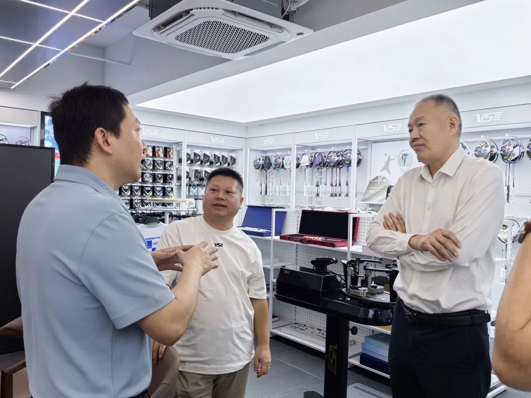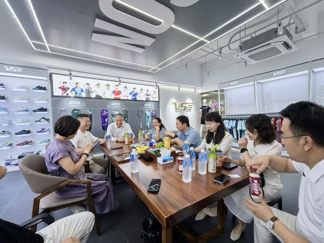 翌日,葛信勇一行来到广州威臣体育用品有限公司,与公司创始人陈锋、商秀娟校友夫妇进行交流。威臣公司成立于2005年,专注于羽毛球运动装备的研发、生产与销售,旗下“威臣”品牌产品远销韩国、印尼、泰国、越南、加拿大等全球40多个国家和地区,是国内体育用品行业具有极强竞争力的领先企业之一。