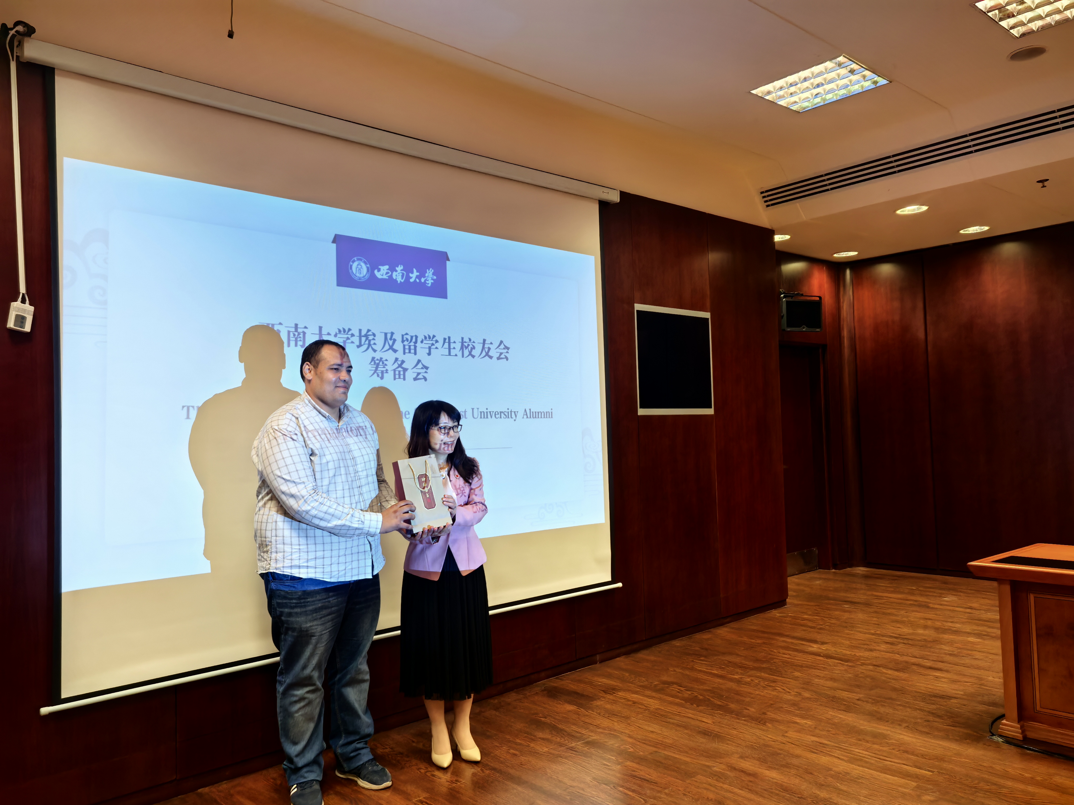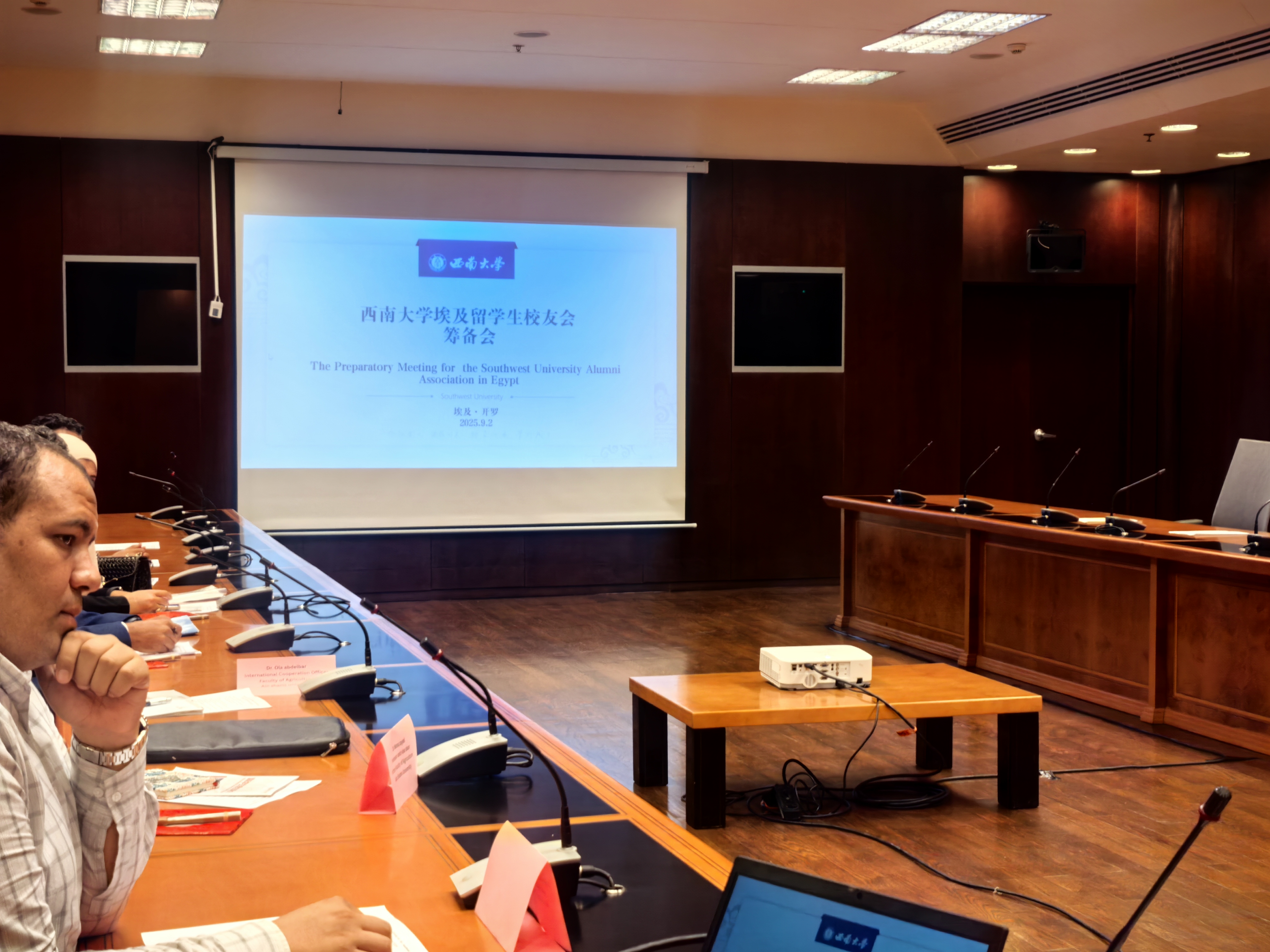 会上,PA视讯国际合作与交流处处长陈炳君详细介绍学校国际合作与交流成果:目前已与 50 多个国家和地区的 230 余所高校、科研机构建立合作关系,与 9 所国外高校在 11 个专业领域开展合作办学,建成 16 个国际联合实验室,并通过 8 个海外国际中文教育机构推动中文传播与文化交流。他表示,期待埃及校友充分发挥跨文化优势,为母校拓展国际合作网络提供助力。随后,艾因夏姆斯大学教师代表分享两校合作心得,埃及校友回忆在西大的求学时光,有意赴华的青年畅谈对中国与西大的向往,真挚分享引发全场共鸣。PA视讯国际学院党委书记张袁松接着提出成立校友会的倡议,明确校友会“温暖纽带”“交流平台”“成长阶梯”的三重定位,与会人员围绕倡议积极建言献策。