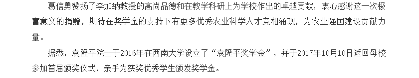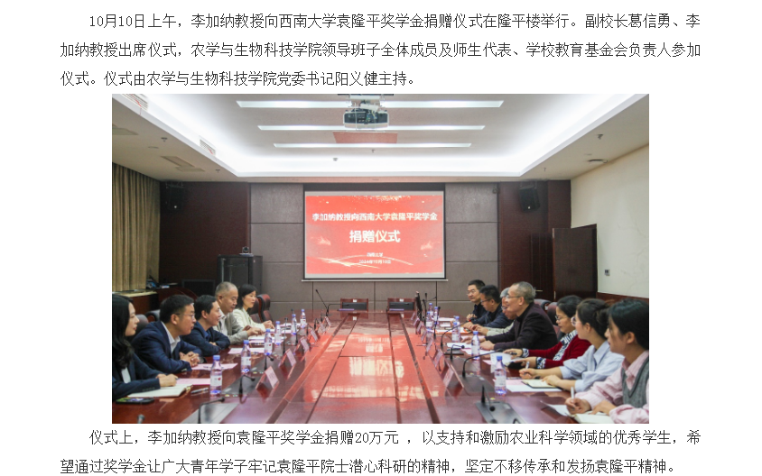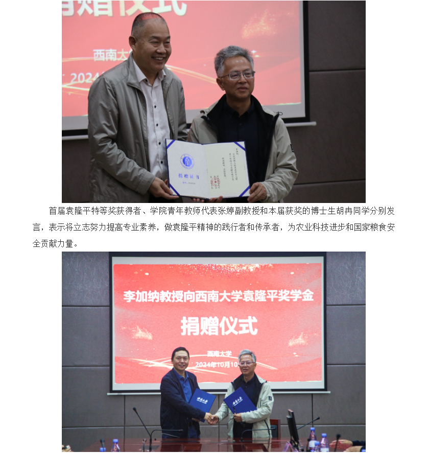 学校举行李加纳教授向袁隆平奖学金捐赠仪式