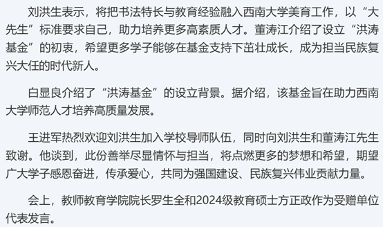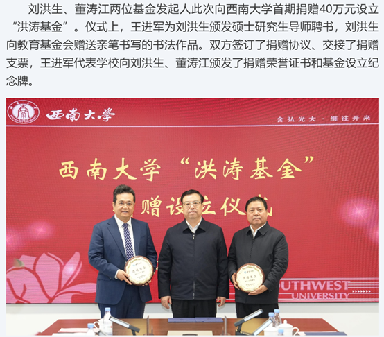 学校举办“洪涛基金”捐赠设立仪式